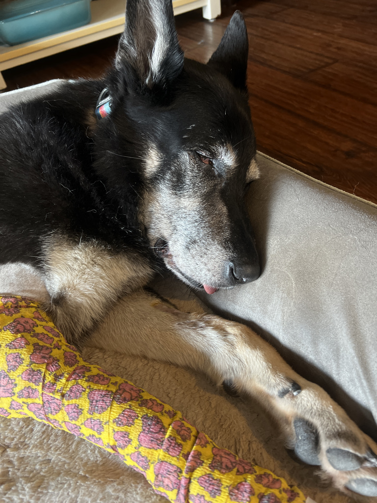 Today is Emmy's 14 and a half birthday. I started counting half birthdays 2 years ago because I know the clock is winding down. But here she is 2 years later! A bit more wobbly in the back end, a bit more incontinent and a lot more precious.
